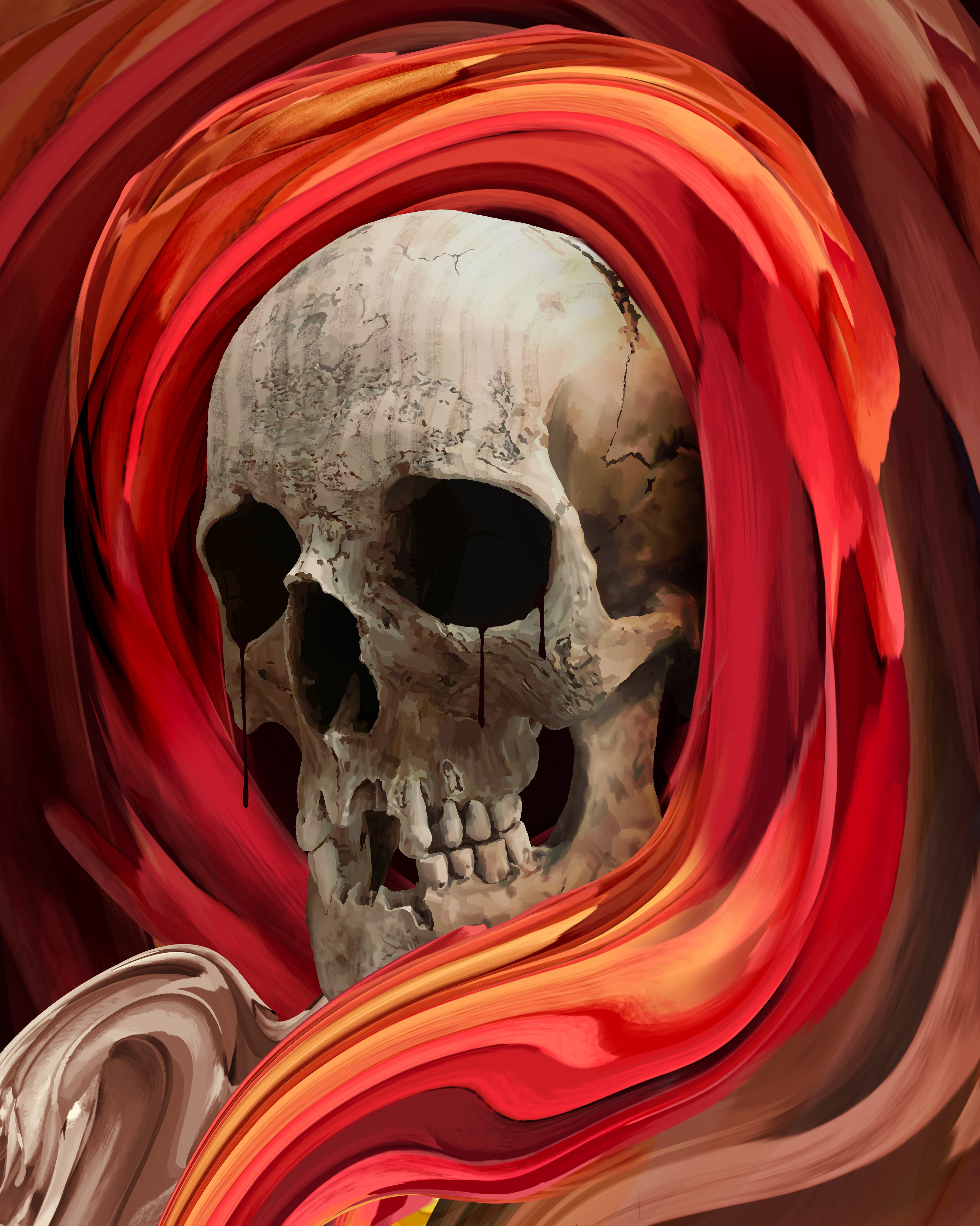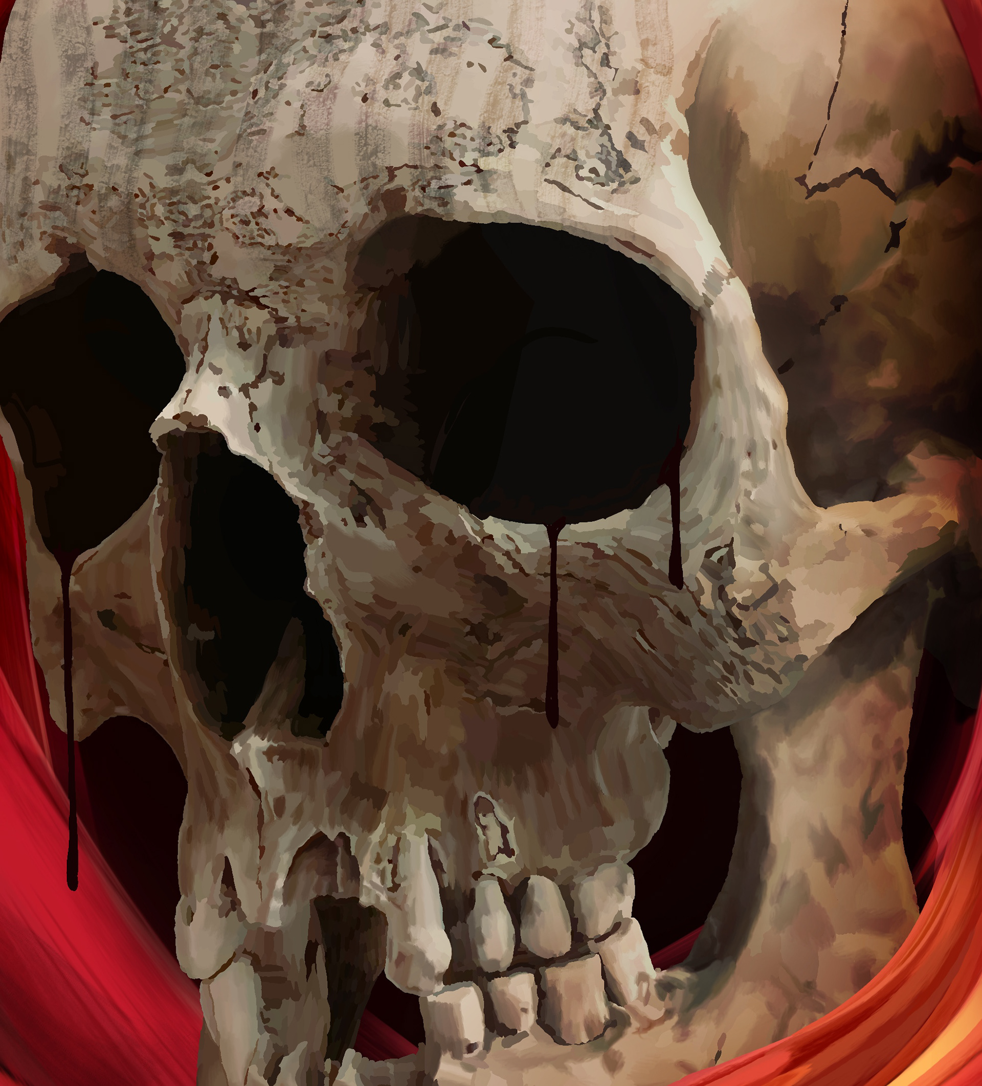 Red ballpoint skull
